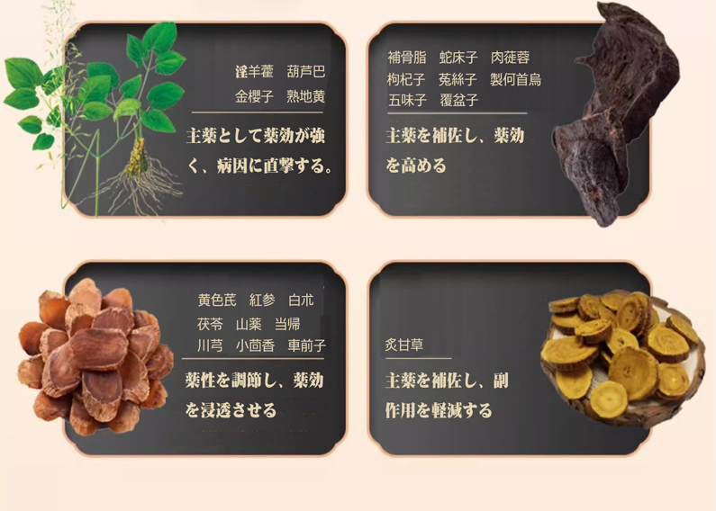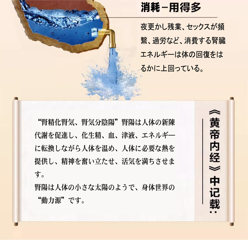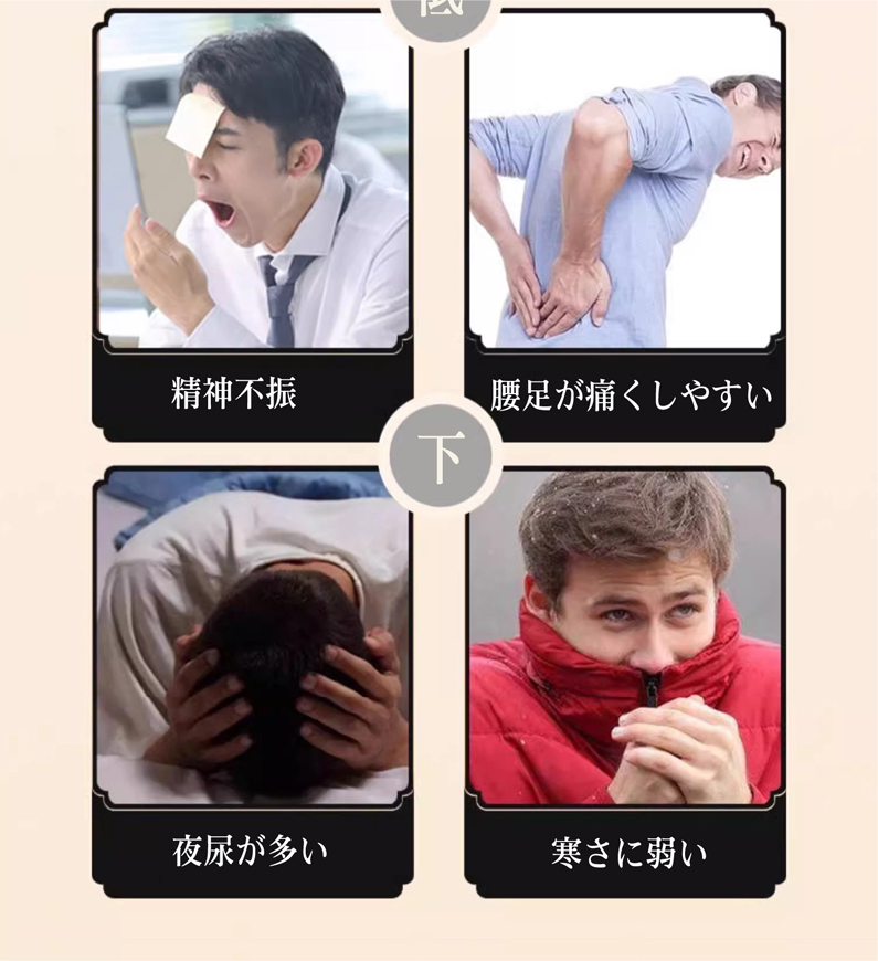 1. 軽度腎機能低下(腰足が痛く、疲れやすい、虚汗、精神不振など)